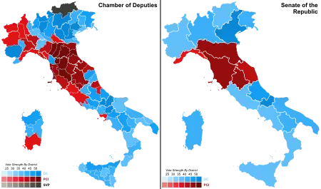 | Итальянская коммунистическая партия | 10 637 772 | 33,83 | 116 | ||