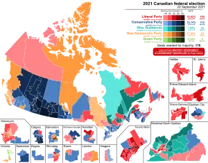 Досрочные Парламентские выборы в Канаде прошли 20 сентября 2021 года. Победу одержала Либеральная партия во главе с Джастином Трюдо, получив 32,3 % голосов[1][2].