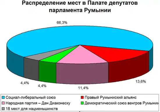 | Эксит-полл[20] | «Социал-либеральный союз» | «Правый румынский альянс» | «Народная партия — Дан Дьяконеску» | «Демократический союз венгров Румынии» |