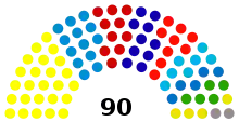 - 88 избираются на основе открытого списка пропорционального представительства в восьми 11-мандатных избирательных округах;