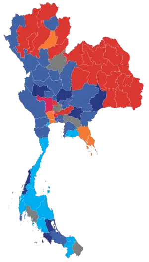 | Партия | Демократическая партия | Бумяжтай | Тайская либеральная партия |