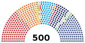 | Прошлые выборы | 265 (48,41%) | новая партия (впервые) | новая партия (впервые) |