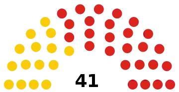| Прошлые выборы | 20 (50,9%) | 16 (46,9%) | |