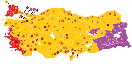 | Результат выборов | 10-процентный барьер прошли четыре партии: Партия справедливости и развития, Республиканская народная партия, Партия демократии народов, Партия националистического движения. | ||