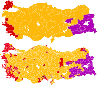 | Партия справедливости и развития | 23.681.926 (49,50 %): ▲8,63 % | 317 (57,64%): ▲59 | |