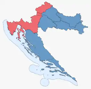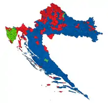 | Коалиция Хорватское демократическое содружество | Хорватское демократическое содружество, Хорватская социал-либеральная партия, Хорватская христианско-демократическая партия | 682 687 | 36,27 % | +2,91 % | 59 | +3 | ||