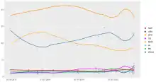 | Июль 2017 | CeDem (недоступная ссылка) | 39 | 11,6 | — | 4,9 | — | 4 | 5,9 | 19,9 | 3,9 | 3,2 | 3,1 | 1,2 | 1,1 | 3,7 | 19,1 |