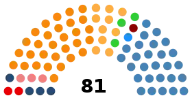 | Прошлые выборы | 36 (41,4 %) | 24 | 10 |