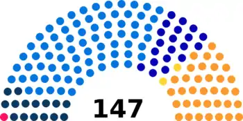 147 депутатов Национального совета избирались в 52 одно- и многомандатных округах. Распределение мандатов было пропорционально населению: одно место парламента на 20 тыс. граждан[2] .