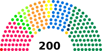 | Прошлые выборы | 54 + 5 (26 6%) | 46 + 11 (18,7%) | 31 + 11 (15,1%) |