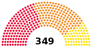 | Прошлые выборы | 113 (31.0%) | 84 (23.3%) | 49 (12.9%) |