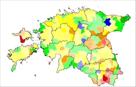| 9 | Уезды Йыгевамаа и Тартумаа (без Тарту) | 7 |