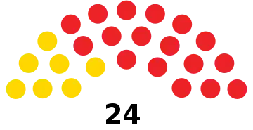| Прошлые выборы | 6 (42,41%) | 18 (57,40%) | |