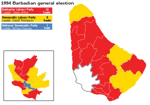 | Результат выборов | Барбадосская лейбористская партия одержала победу, Оуэн Артур стал премьер-министром. | ||