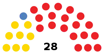 | Прошлые выборы | 10 (43,03%) | 18 (49,77%) | 0 (новая) |