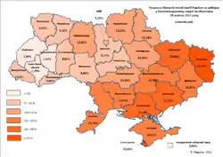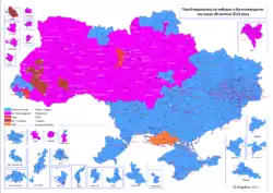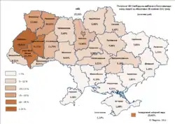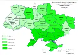 | Всеукраинское объединение «Свобода» | 2129906 | 10,44 % | ▲9,68 % | 25 | 12 | 37 |