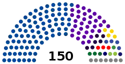 Однопалатный, состоит из 150 депутатов. 77 депутатов избираются по спискам, 73 — от одномандатных округов. Все депутаты избираются сроком на 4 года на основе всеобщего голосования.