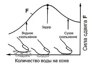 Легко видеть, что при избытке воды в ваннах и душах мытейный инструмент за счет смазки слоем воды не может «зацепиться за кожу» и сдвинуть слой омертвевших чешуек рогового слоя. Так, смоченный водой палец легко скользит по ладони (мокрое скольжение). Но по мере высыхания палец начинает ощущать усилие трения - «приклеивание» к коже (явление задира). А потом, уже при высохшем пальце, усилие трения вновь снижается (сухое скольжение). Поэтому в ходе теплого мытья важно иметь ограниченное количество воды между мытейным инструментом и распаренной кожей. Как раз это может реализовываться при банном мытье мочалкой на воздухе (или, например, растиранием распаренной кожи сухим полотенцем по японской банной традиции). Поэтому и в ванне при мытье мочалкой человек порой невольно приподнимается над водой, то есть переходит на банный способ мытья. Указанные особенности используются и в косметологии, где «шершавая» протирка распаренной кожи лица салфеткой очищает лучше и мягче, чем ранящие кожу (фактически хирургические) методы, например, механическое царапание кожи скрабами (абразивами) или химическое растворение рогового слоя эпидермиса фруктовыми кислотами. При протирке можно дополнительно применять растворы алкоголя (одеколоны, лосьоны), эффективно отслаивающие чешуйки распаренного рогового слоя.