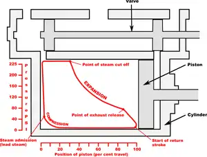 Выпускное окно цилиндра паровой машины перекрывается несколько раньше, чем поршень доходит до своего крайнего положения, что оставляет в цилиндре некоторое количество отработанного пара. Это означает, что в цикле работы присутствует фаза сжатия, формирующая так называемую «паровую подушку», замедляющую движение поршня в его крайних положениях. Кроме того, это устраняет резкий перепад давления в самом начале фазы впуска, когда в цилиндр поступает свежий пар.