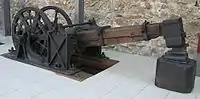 ![]() Горизонтальная стационарная двухцилиндровая паровая машина для привода заводских трансмиссий. Конец XIX в. Музей индустриальной культуры. Нюрнберг | |