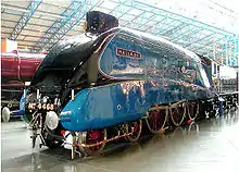 Самый первый официальный рекорд для рельсового транспорта был зарегистрирован в 1829 году в Англии и является рекордом скорости. 6 октября этого года на железной дороге Манчестер — Ливерпуль при большом стечении народа состоялись гонки, вошедшие в историю как «Рейнхильские состязания» (англ. Rainhill Trials). Победителем этих соревнований стал паровоз Стефенсона «Ракета», который 8 октября развил скорость 24 мили/ч (38,6 км/ч), по другим данным — 30 миль/ч (48 км/ч), что на то время являлось рекордом для сухопутного транспорта[41]. Дальнейшей планкой, к которой стремились конструкторы паровозов, стала скорость в 100 миль/ч (160,9 км/ч). Точные данные о том, когда этот рекорд был побит, весьма разнятся. Так, согласно одним данным, в сентябре 1839 года такой скорости достиг английский паровоз «Hurricane» («Харрикейн», «Ураган») типа 1-1-1 с диаметром движущих колёс 3048 мм (10 футов). Согласно другим, это был американский паровоз типа 2-2-0 № 999, который 10 мая 1893 года с поездом «Empire State Express» развил скорость в 181 км/ч. Однако оба эти факта нередко ставятся под сомнение различными авторитетными учёными[41]. Рекорд скорости в 200 км/ч был превзойдён 11 мая 1936 года, когда немецкий паровоз серии 05 типа 2-3-2 фирмы «Борзиг» в демонстрационной поездке достиг скорости 200,4 км/ч. Окончательный же рекорд скорости для паровозов был установлен 3 июля 1938 года, английский паровоз серии A4 № 4468 «Mallard» («Дикая утка») достиг скорости 202 км/ч (125 миль/ч)[41].