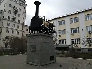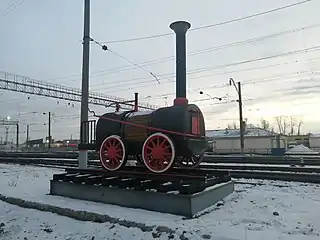 Памятник первому паровозу Черепановых возле Музея истории Уралвагонзавода