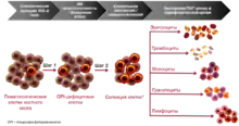 Костномозговая недостаточность является следствием нарушения процесса гемопоэза. У пациентов с ПНГ степень нарушения функции костного мозга может варьироваться от умеренной до тяжелой. Патогенетические механизмы развития костномозговой недостаточности при ПНГ предполагают иммуно-опосредованное поражение ГСК и, в конечном счете, панцитопении (Young and Maciejewski, 2000; Young et. al., 2006).