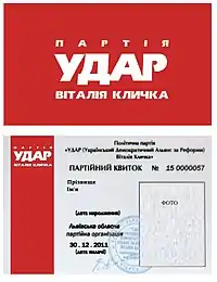 Украина Будущего — партийный билет, выполнен в виде пластиковой карты