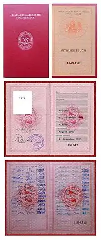 Партийный билет правящей Социалистической единой партии Германии (СЕПГ) в ГДР