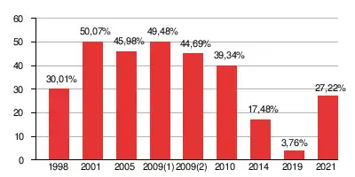 | Выборы | Кандидат | Первый тур | Второй тур | Результат | ||