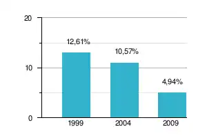Поддержка партии на парламентских выборах