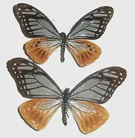 Размах крыльев от 8 до 9,5 см. Бабочка сильно отличается от представителей рода Papilio. Она похожа на вид Danaus sita из семейства Данаиды. У этих видов одинаковая окраска, особенности полёта, а также расположение крыльев при посадке.