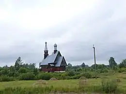 - За ним неподалёку расположена церковь святого Серафима Саровского, несмотря на то, что она построена в конце XX века, выдержана в традиционном стиле клетской церкви XVII века (см. Основные типы деревянных храмов).