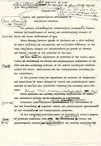 Оригинальный текст (исп.)[показатьскрыть]El presente libro estudia con cierto detalle los problemas metodológicos de la psicología social, su relación con la psicología, la sociología, la historia, la pedagogía y otras disciplinas. Se interesa también en los problemas de la psicología social aplicada a la industria, la educación, el género de vida (incluyendo el ocio y el descanso), la política, el arte y la ciencia. No hay duda de que entre la Reflexología Colectiva de Beehterev y la psicología social de Pariguin hay un abismo.