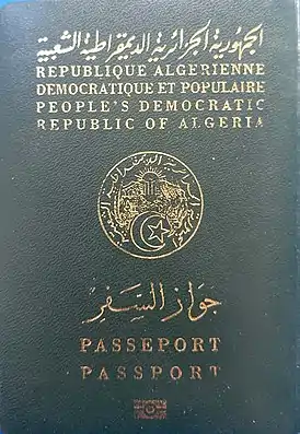 ![]() Лицевая сторона обложки биометрического паспорта Алжира | |