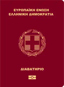![]() Лицевая сторона обложки биометрического паспорта гражданина Греции | |