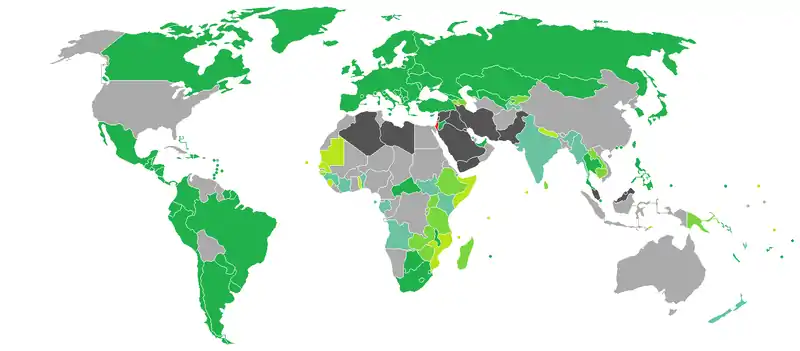 В дополнение к этому, Иран,[12] Кувейт,[13] Ливан,[14] Ливия,[15] Саудовская Аравия,[16] Сирия[17] и Йемен[18] не разрешают въезд на свою территорию людям, в чьих паспортах есть свидетельства посещения Израиля (в том числе и штампы наземных приграничных переходов Египта или Иордании на границе с Израилем), а также паспорта, в которых есть использованная или неиспользованная израильская виза или даже штамп об отказе в израильской визе.