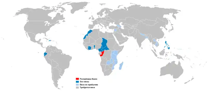 Следующие страны доступны гражданам Республики Конго для безвизового (или получения визы по прибытии) посещения: