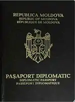 Дипломатический паспорт — удостоверяющий личность документ, выдаваемый Министерством иностранных дел и европейской интеграции лицам, имеющим исключительно гражданство Республики Молдова, для выезда из Республики Молдова и въезда в Республику Молдова в целях выполнения дипломатических и консульских миссий, а также других официальных функций за рубежом в интересах государства или, в строго предусмотренных законодательством случаях, в целях сопровождения лиц, имеющих право на дипломатический паспорт, другими лицами, предусмотренными в настоящем законе, а также для использования в качестве идентификационного документа на территории Республики Молдавия или других государств в связи с занимаемой должностью или спецификой выполняемых обязанностей.