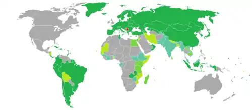 - † означает страны, которые имеют соглашение с Сербией о безвизовом проезде; оставшиеся страны обычно не требуют виз или заключили одностороннее соглашение об этом