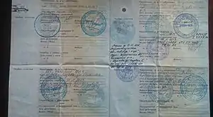 В СССР паспорт транспортного средства назывался технический паспорт (техпаспорт)[24]. ПТС был введён в России взамен техпаспорта в 1993 году[4].