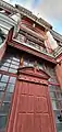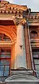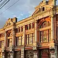 Каменное здание имеет три этажа. На первых двух этажах располагались торговые отделы. Окна этих этажей витринного типа, перекрыты железными балками. Узкие простенки между окнами декорированы вертикальными плоскими выступами и полуколоннами. Простенки первого этажа рустованы. Третий этаж прорезан небольшими арочными окнами. Венчали здание два четырёхгранных «французских» купола, которые не сохранились до нашего времени.[4]