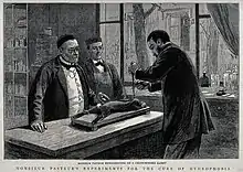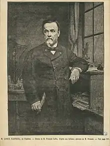 Луи́ Пасте́р (фр. Louis Pasteur, французское произношение: [lwi pastœʁ][1][Прим. 1]; 27 декабря 1822, Доль, департамент Юра — 28 сентября 1895, шато Вильнёв-л’Этан близ Гарша)[3] — французский химик и микробиолог, член Французской академии («бессмертных»; 1881). Пастер, показав микробиологическую сущность брожения и многих болезней животных и человека, стал одним из основоположников микробиологии, создателем научных основ вакцинации и вакцин против сибирской язвы, куриной холеры и бешенства. Его работы в области строения кристаллов и явления поляризации легли в основу стереохимии[4]. Также Пастер поставил точку в многовековом споре о самозарождении некоторых форм жизни в настоящее время, опытным путём доказав невозможность этого. Его имя широко известно благодаря созданной им и названной позже в его честь технологии пастеризации.