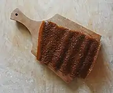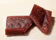 Пастила́ — кондитерское изделие из подсушенного фруктово-ягодного пюре или сока[1][2]. Блюдо русской кухни[3] (известно с XIV в.). Следует[4] разделять белёвскую и коломенскую пастилы, так как приготовляются они по различным рецептам — первая скорее напоминает фруктовое суфле, а вторая близка зефиру и, как считается, является его прообразом[5].
