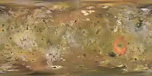 ![]() Патера Локи на снимке КА «Вояджер-1» с потоками лавы и вулканическими кратерами. | |