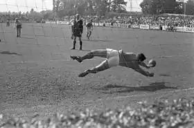 ![]() Патернотте парирует пенальти в матче «Блау-Вит» — «Витесс», 25 августа 1968 года. | |||||||||||||