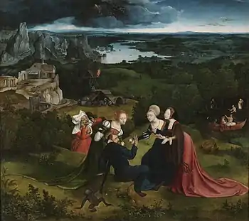 Хотя пейзажу во фламандской живописи уделялось большое внимание и в творчестве более ранних художников, таких как Ян ван Эйк, Петрус Кристус, Дирк Баутс или Хуго ван дер Гус, именно Патинир считается первым фламандским пейзажистом и вообще первым художником, специализировавшимся в этом жанре[2]; он во многих случаях даже специально оставлял работу над фигурами другим мастерам, как это было в «Пейзаже с искушением святого Антония», Прадо, Мадрид[2]. В живописи Патинира акцентировка повествовательных элементов традиционно характерная для первого плана картины, охватывает и фон, благодаря чему внимание к природе и далёким горизонтам приобретает новое значение[2]. А его новаторское отображение атмосферных эффектов в цветовом спектре от чистейшей лазури до ослепительного белого сияния горизонта свидетельствует об особом интересе художника к особенностям живого, реального пейзажа[2].