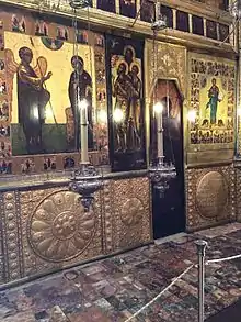 Образы святых царских покровителей помещали в местный ряд иконостаса Благовещенского собора (домового царского храма), справа от храмовой иконы Благовещения напротив царского моленного места[7]. К своему небесному покровителю за богослужением в домовом храме царь обращал свои молитвы, и святой должен был быть молитвенником за своего венценосного тёзку[8].