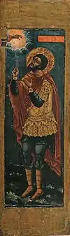 «Святой Феодор Стратилат» | Фёдор I Иванович | Москва, около 1584 года, запись — XVIII век. Дерево, левкас; темпера. 152х46 см.[17]