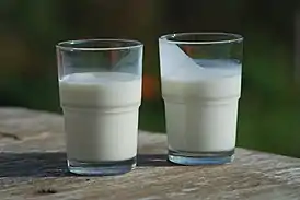 ![]() Цельное молоко (слева) и пахта (справа) | |
